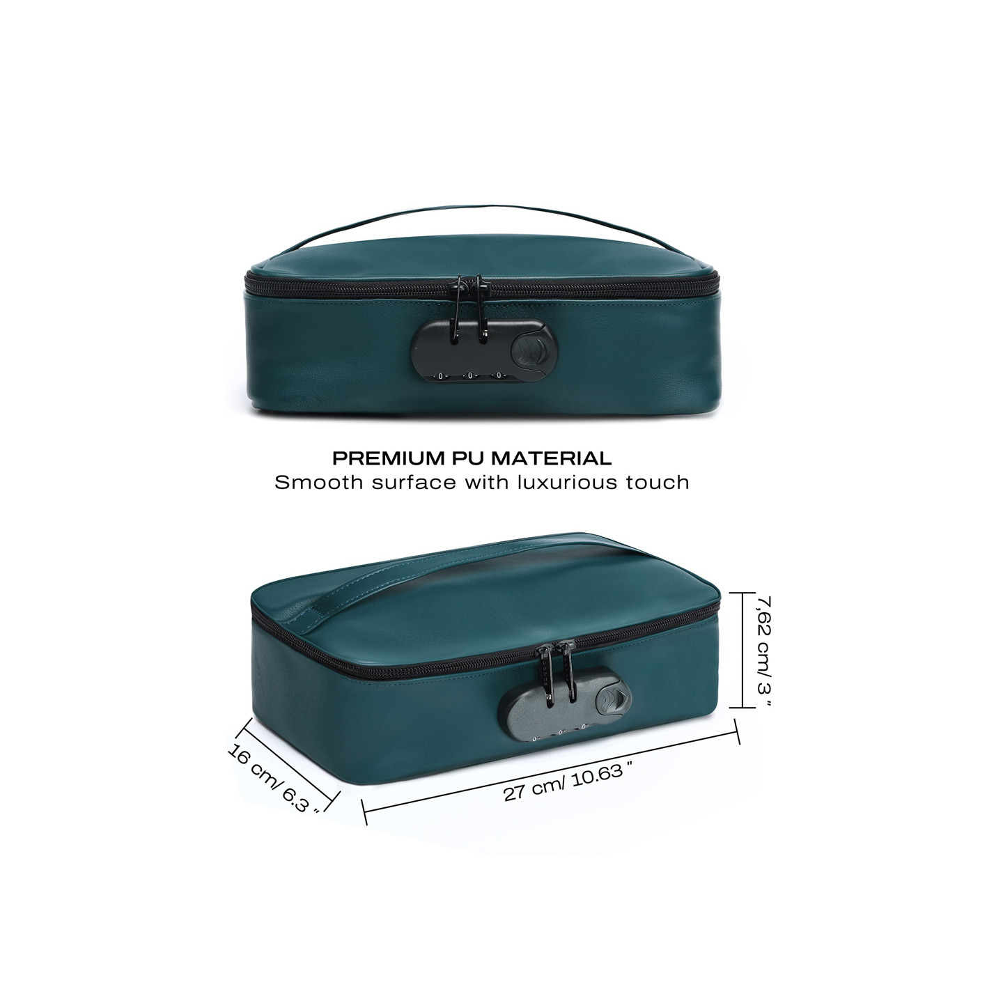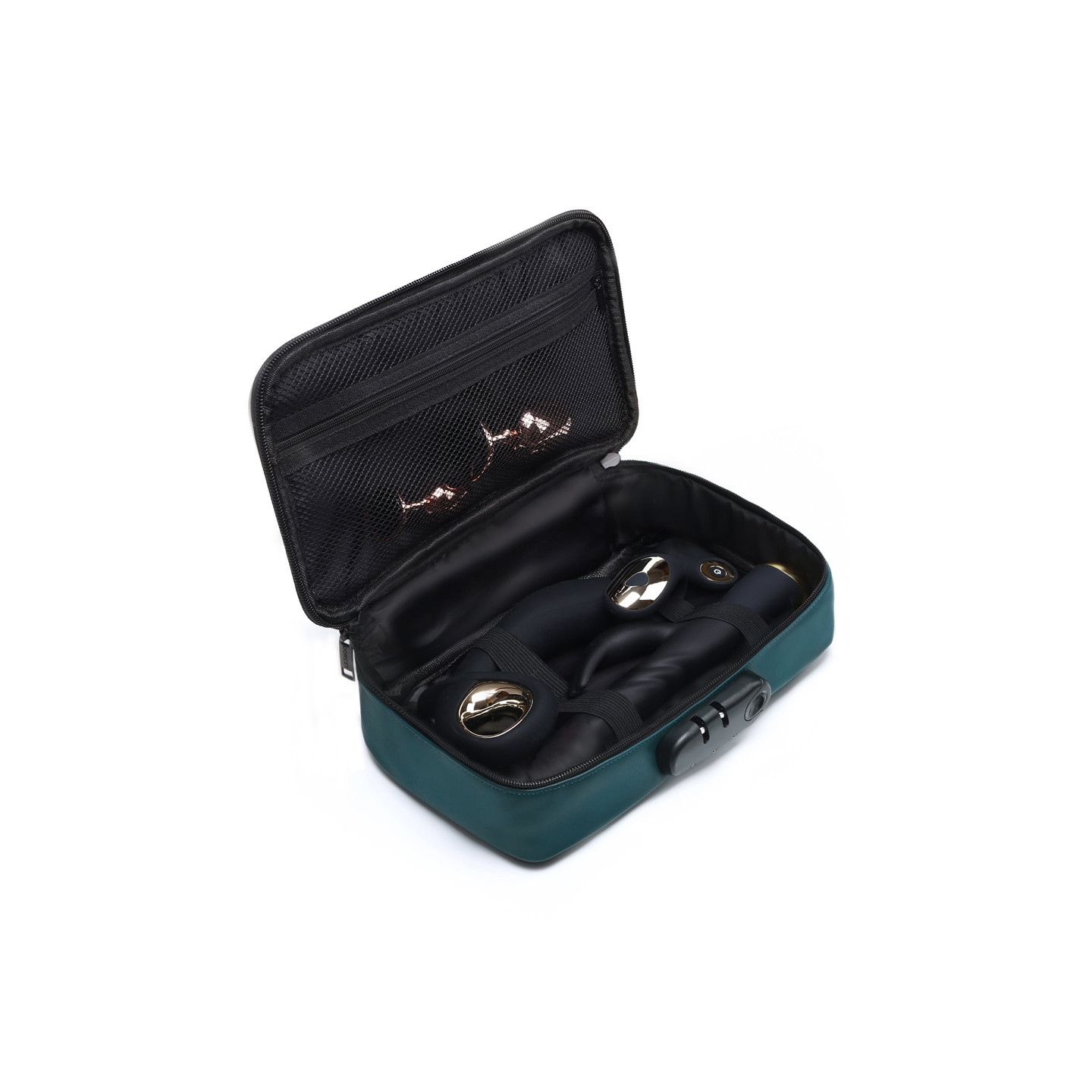 La Discreet Box (modèle luxury green) imaginée par Dorcel sera parfaite pour abriter vos sextoys et accessoires coquins. Sa conception permet de ranger 4 à 5 toys de taille moyenne de manière sécurisée grâce à son code à combinaison de 3 chiffres. La combinaison est personnalisable.