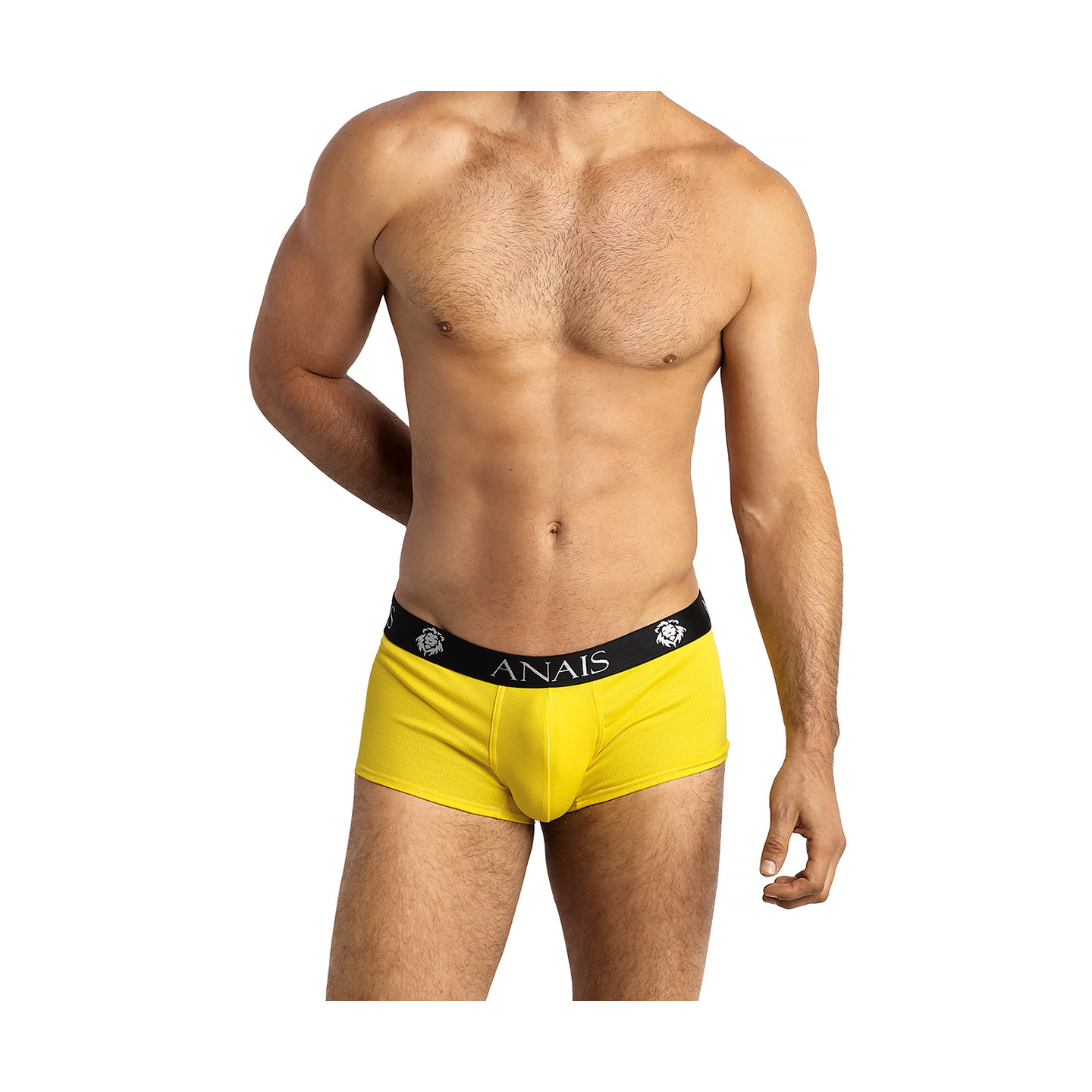 Ce boxer sexy est fabriqué en Tissu jaune texturé esprit gaufré.