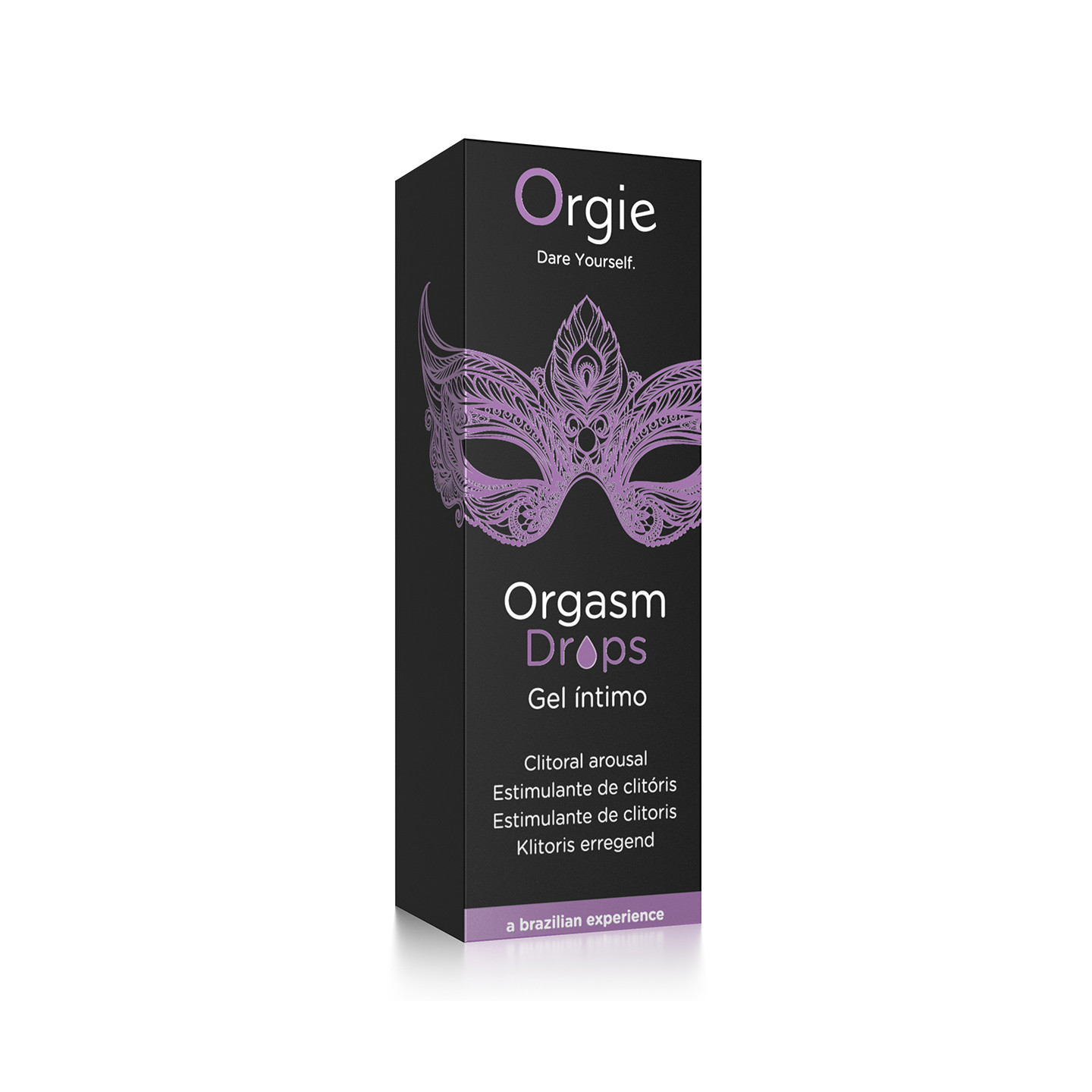 "Orgasm Drops Clitoral Arousal Intimate Gel" est un gel intime d'excitation du clitoris, avec effets chauffants et rafraichissants, de la marque de cosmétique érotique Orgie.