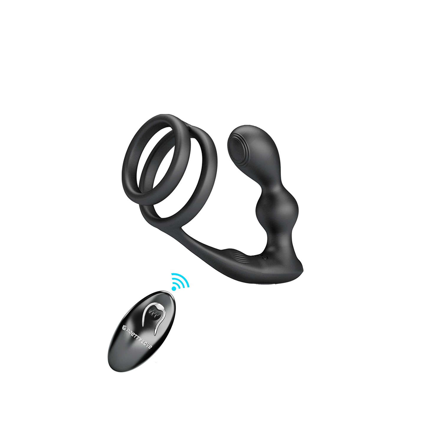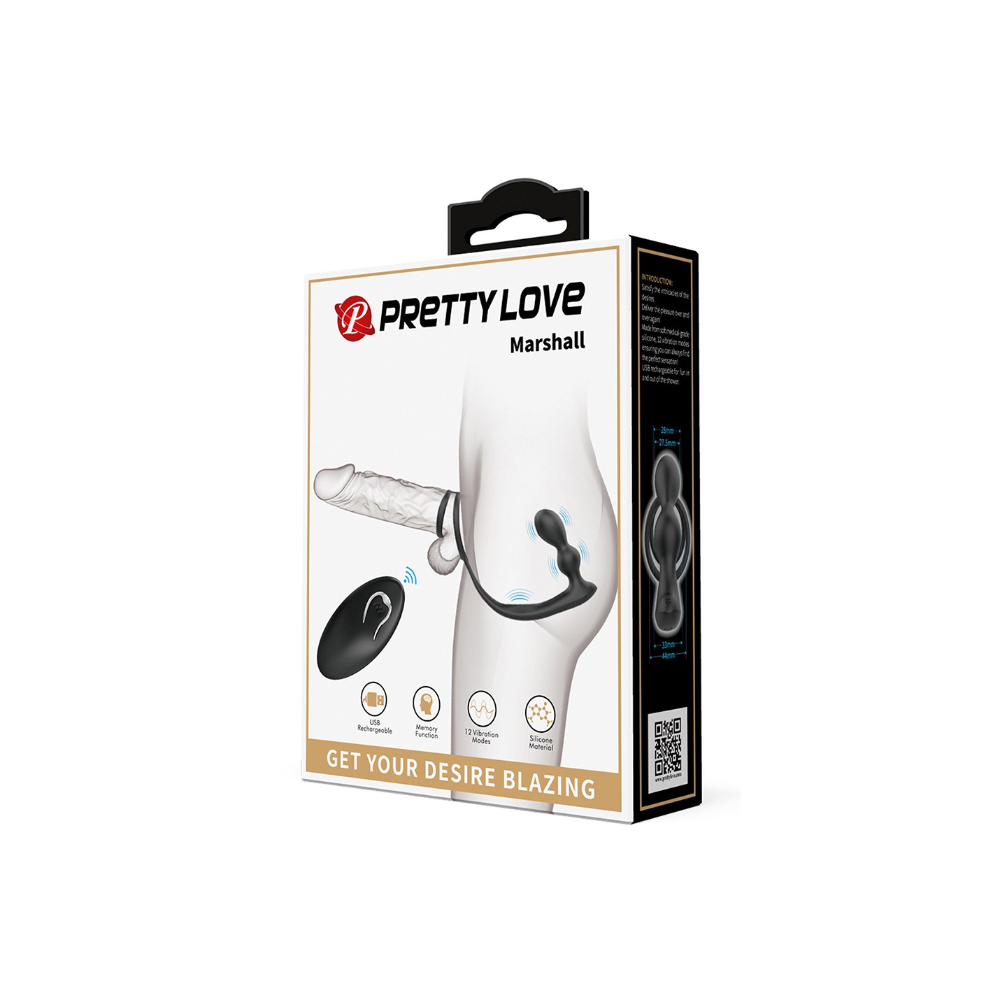 lanneau de pénis Marshall de la marque Pretty Love est un sextoy masculin deux-en-un qui fait simultanément office de cockring et de stimulateur de prostate.
