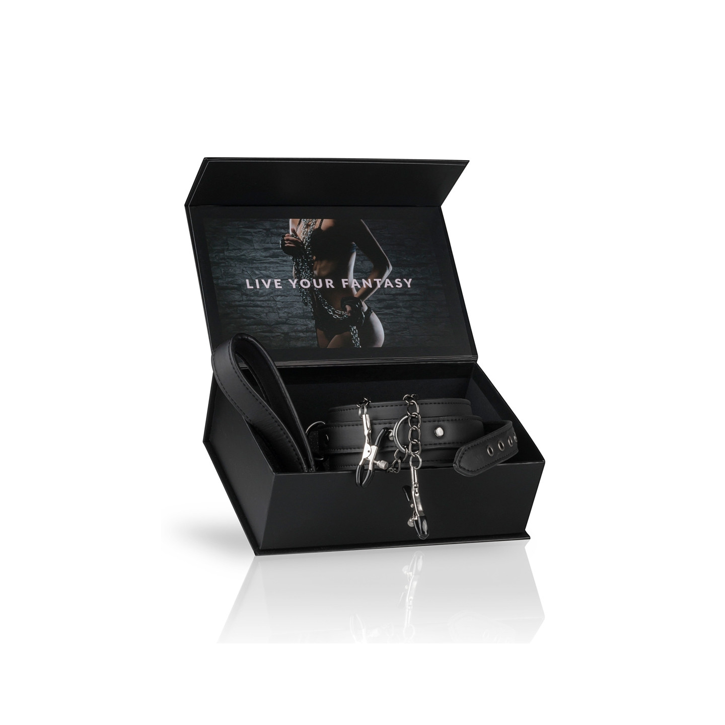 Avec cet ensemble collier + pinces à seins + laisse, vous ferez l'expérience d'un jeu SM très excitant et sexy.