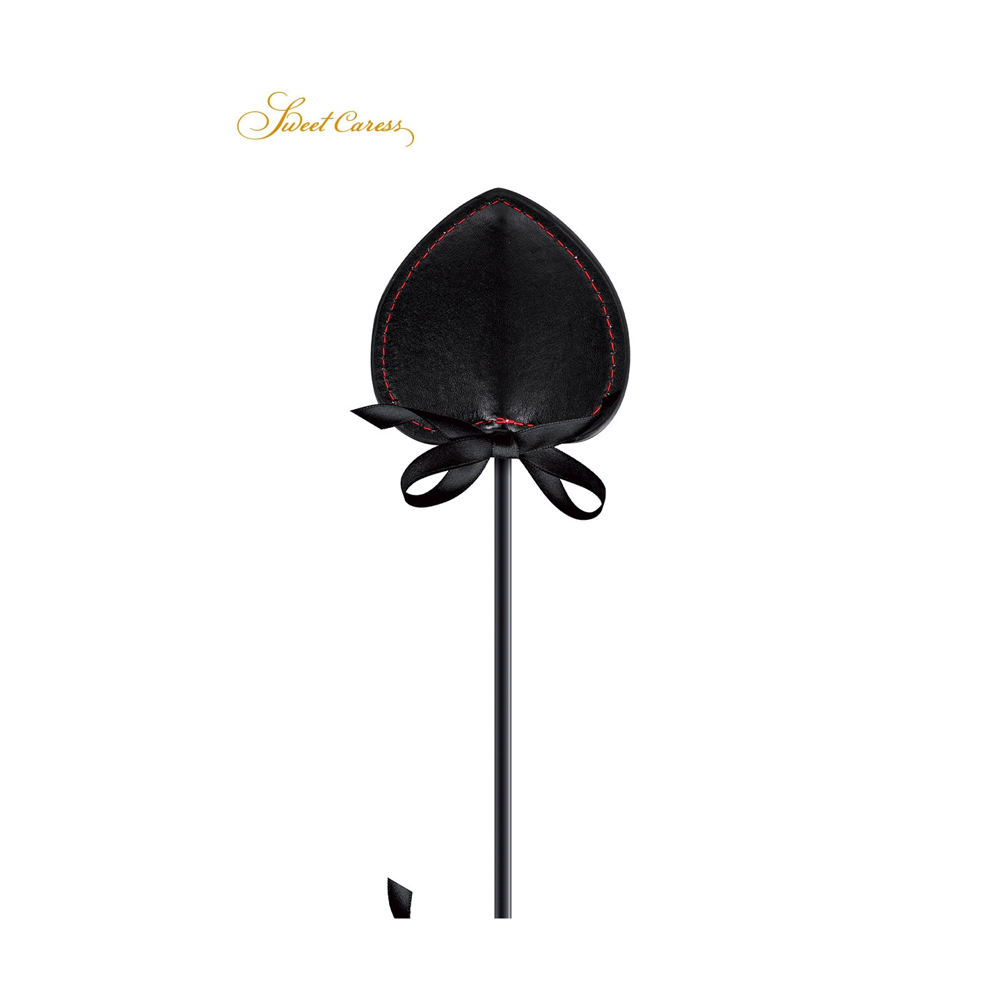 Un accessoire BDSM 2 en 1 avec un côté cravache doté d'une claquette en forme de pique pour punir tendrement, et un côté pompon pour faire plaisir, par Sweet Caress.