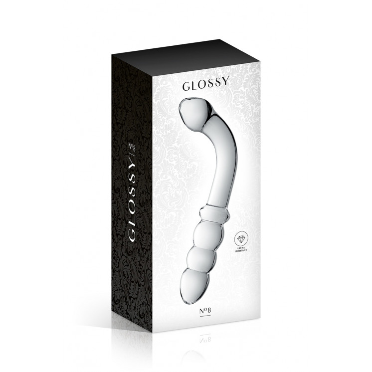 "Glossy n° 8" est utilisable par ses 2 extrémités. La partie ondulée est particulièrement appréciée pour le plaisir anal, tandis que la partie coudée avec une terminaison en boule est particulièrement apprécié pour la stimulation vaginale et du point G.