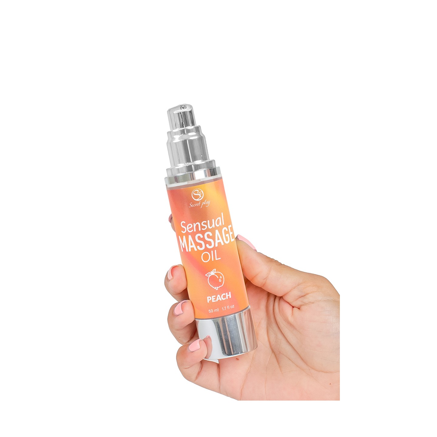 Huile de massage sensuelle au parfum de pêche signée par la marque Espagnole Secret Play.
