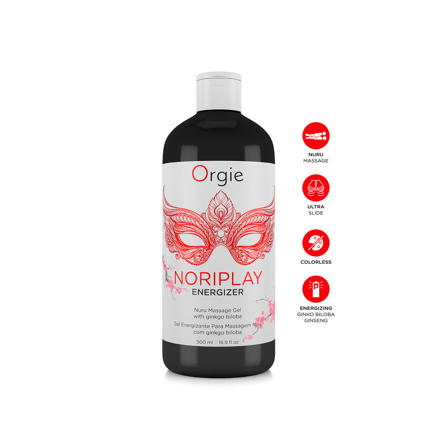 Le gel Noriplay Energizer formulé à base dextrait dalgues et enrichi en Ginkgo Biloba offre la texture parfaite et un effet ultra glissant pour réaliser le massage Nuru corps à corps renforcé par les propriétés énergisantes du Ginkgo Biloba et du Ginseng.