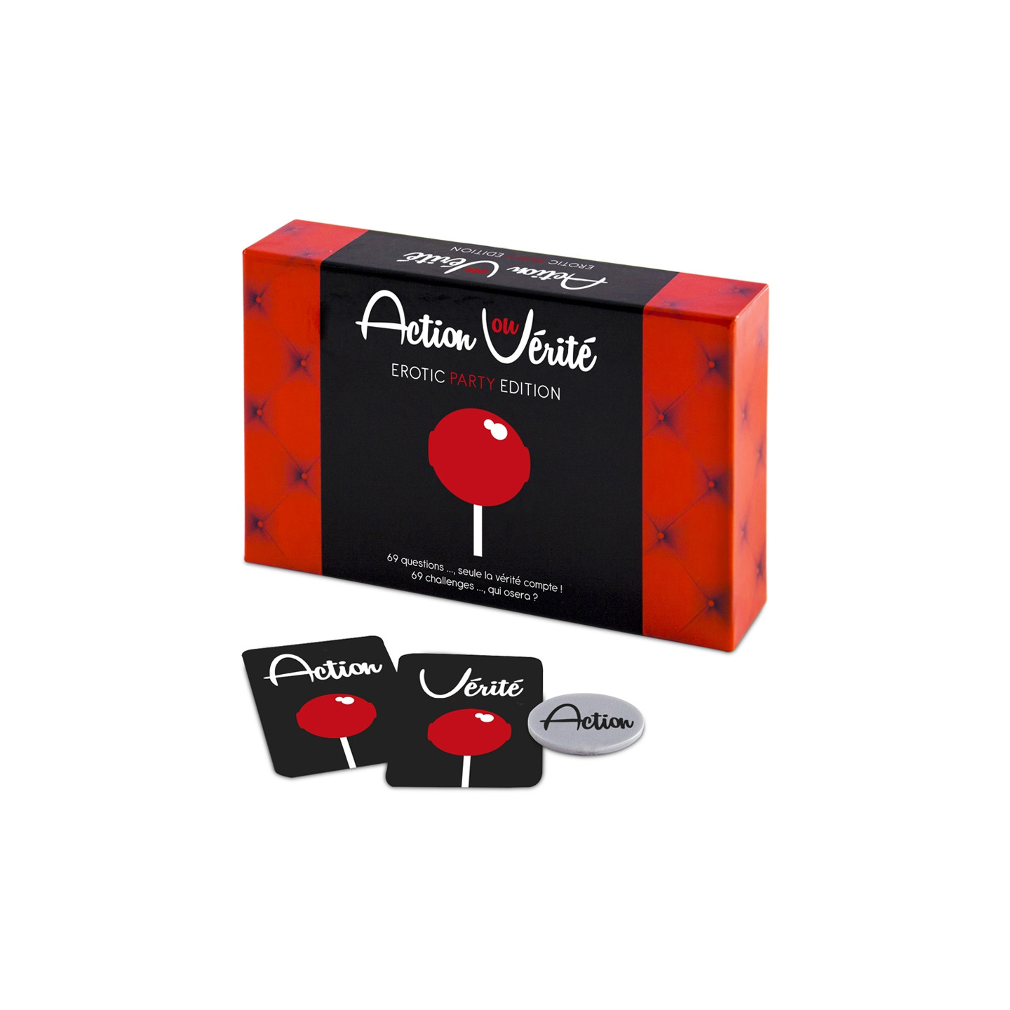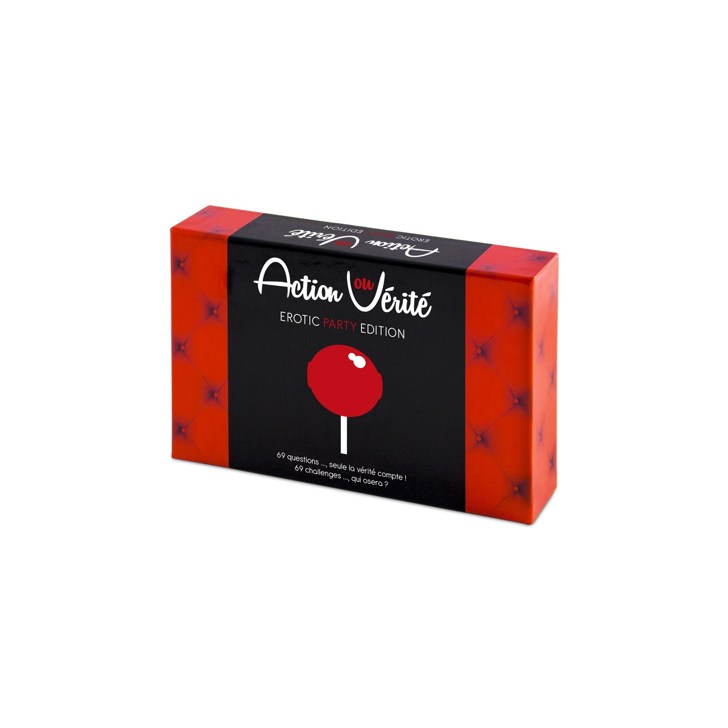 Jouez et tentez de répondre à 69 vérités coquines et réalisez 69 actions très osées. Extrêmement excitant, Action ou Vérité Erotic Party Edition est un jeu à jouer avec vos amis et amies (18+) juste avant ou pendant une fête ou bien simplement lorsque votre groupe a envie de « suspens et de sensation ». Ce jeu coquin est un parfait concentré dexcitation et de débauche !