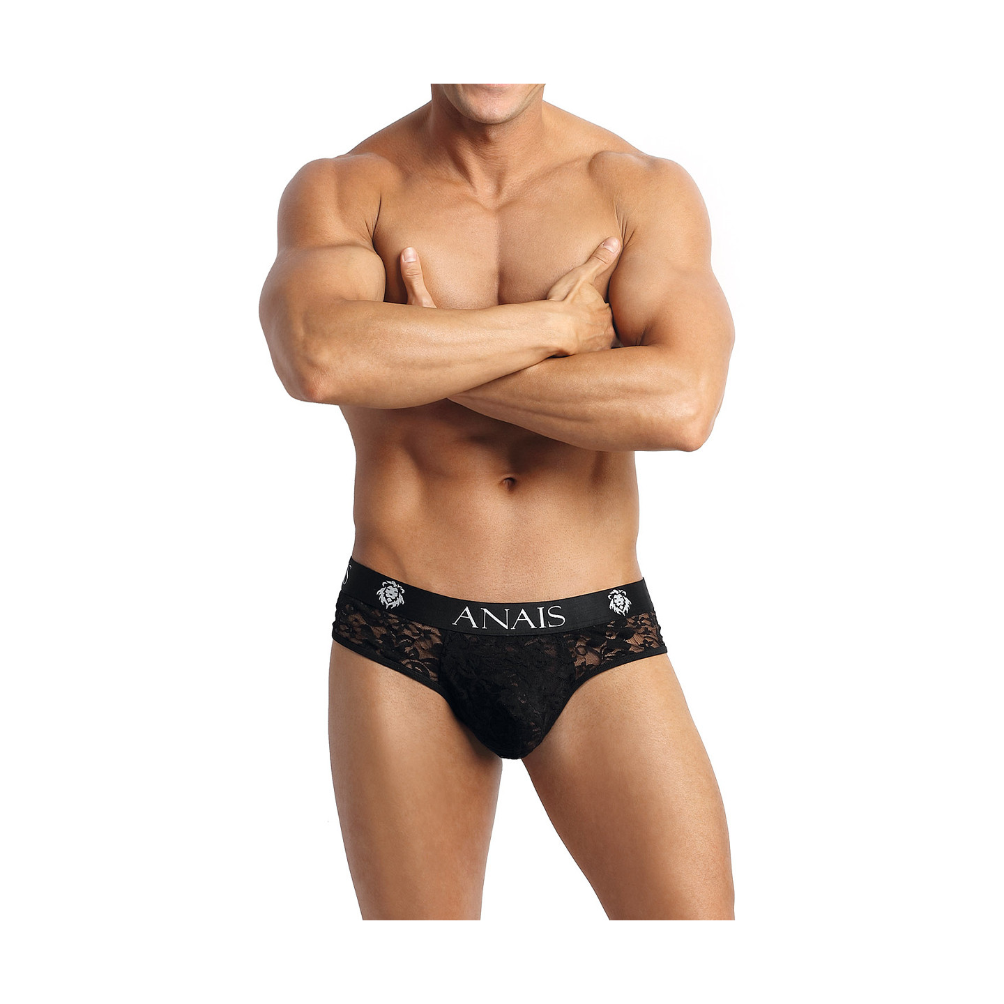 Jock Bikini sexy pour homme fabriqué en Dentelle noire au motif fleuri par la marque Anaïs For Men en Europe