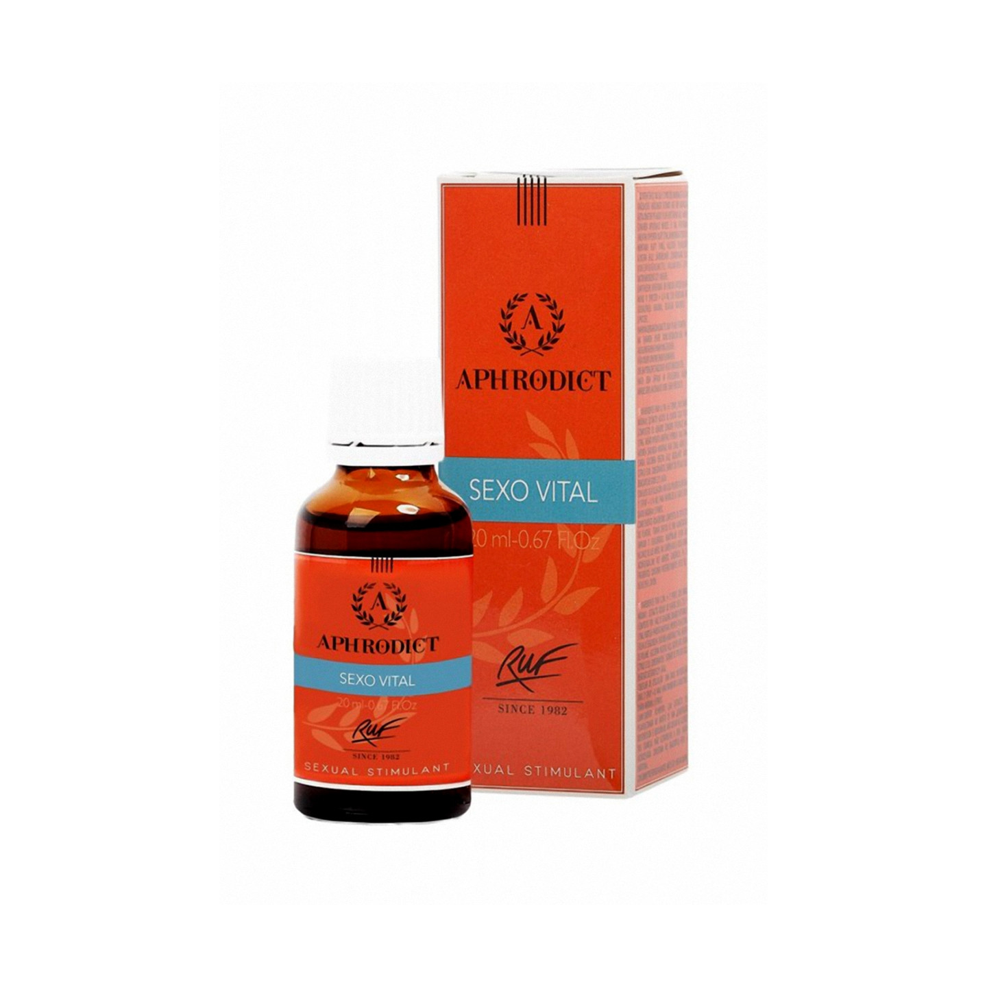 Ruf, laboratoire français de cosmétique érotique, propose le stimulant sexuel pour couple Aphrodict - Sexo Vital, un complément alimentaire Booster de libido. Celui-ci booste tout autant le désir et les performances sexuelles de l'homme que de la femme.
