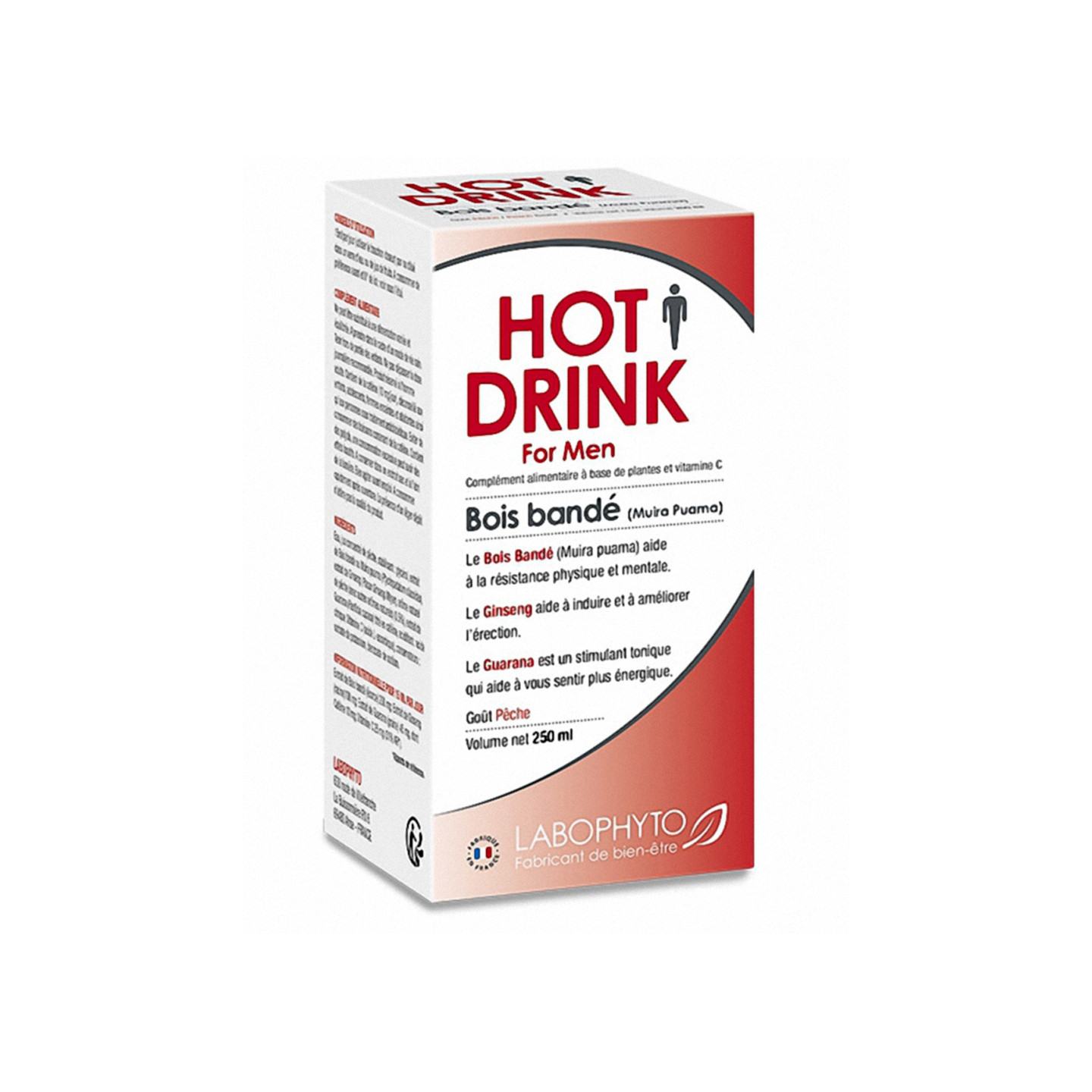 Hot Drink pour hommes des laboratoires Labophyto est un complément alimentaire à base de plantes et vitamines qui contient du bois bandé aphrodisiaque (ou Muira Puama) qui permet de booster l'activité sexuelle masculine, ainsi que du Ginseng qui améliore l'érection.