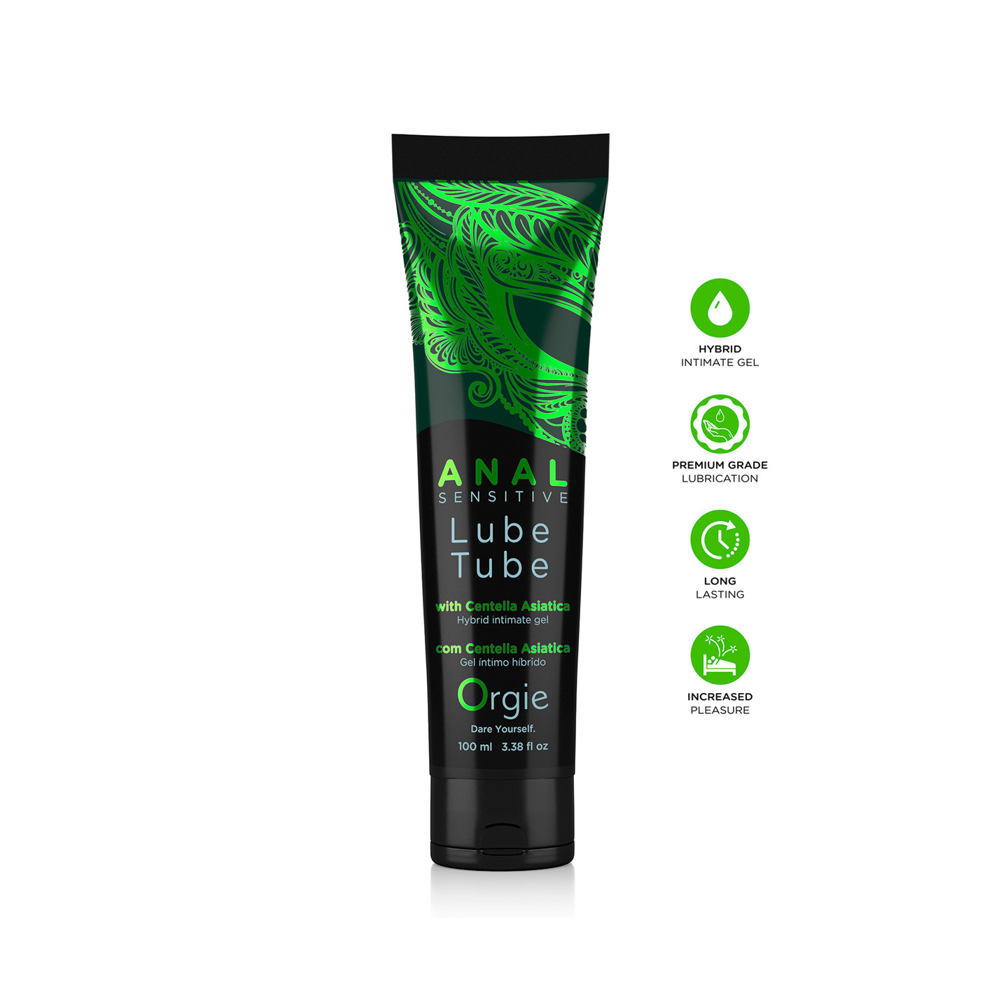 Lube Tube Anal Sensitive, de la marque Orgie, est un gel lubrifiant intime hybride, embrassable, hydratant, très glissant et longue durée qui est formulé à base deau combinée à dautres ingrédients qui simulent leffet du silicone.
