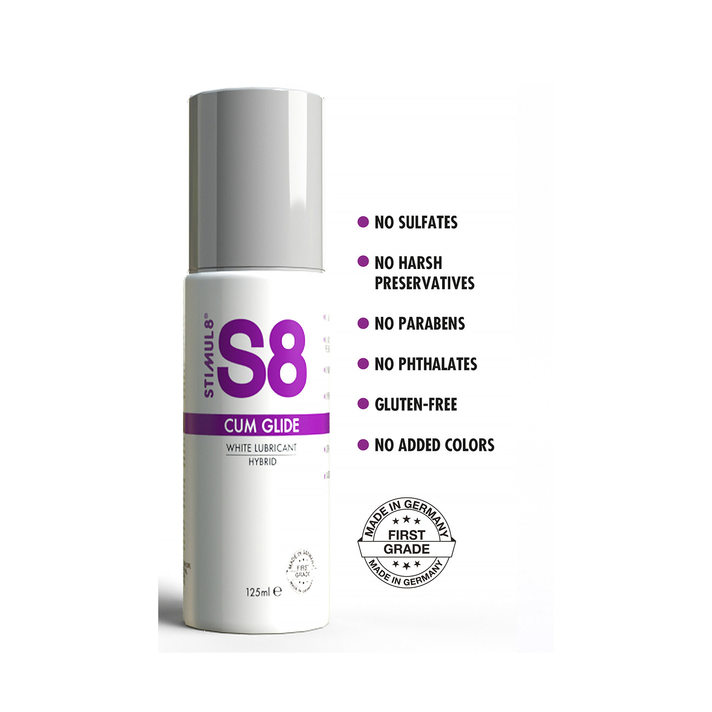 S8 Hybrid Cum Glide 125 ml est un lubrifiant Premium conçu pour imiter le sperme et améliorer vos expériences intimes grâce à sa formule à base hybride. Ce lubrifiant sans huile ni graisse est méticuleusement conçu pour offrir une expérience agréable sans aucun gâchis.