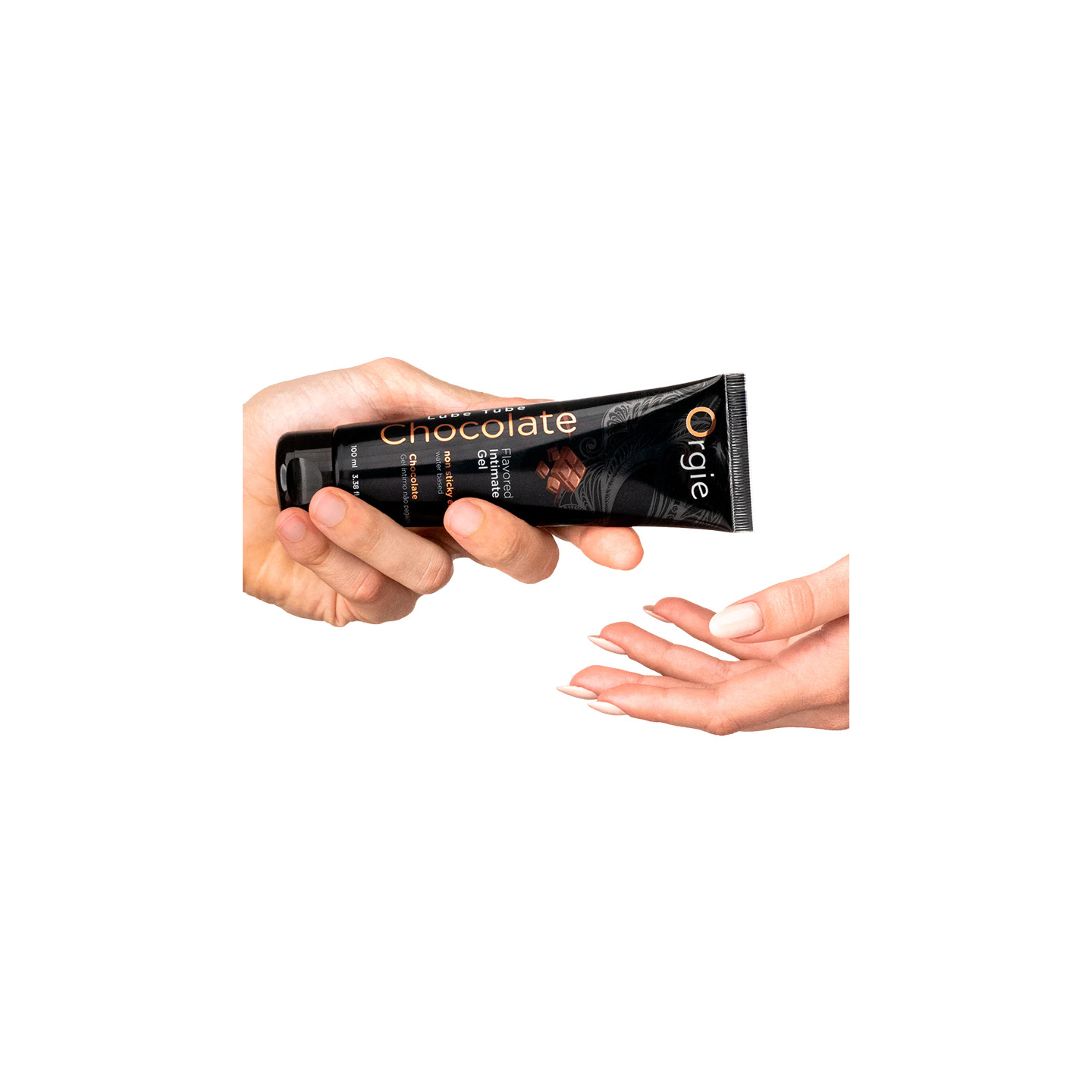 Lube Tube Chocolate (150 ml), le gel intime à base deau, embrassable, au goût de chocolat, de la marque orgie.