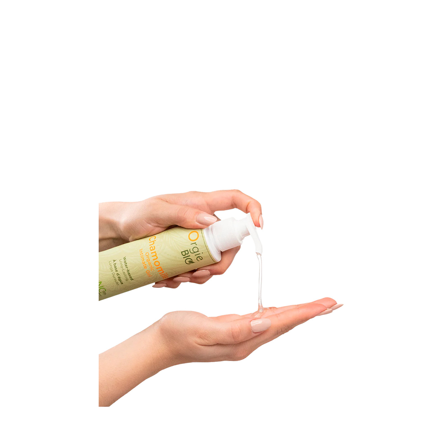 Orgie Bio Chamomile Organic Intimate Gel est un gel intime bio à base d'eau, formulé à la camomille, aux propriétés antifongiques, antibactériennes, antiseptiques et apaisantes pour la peau.