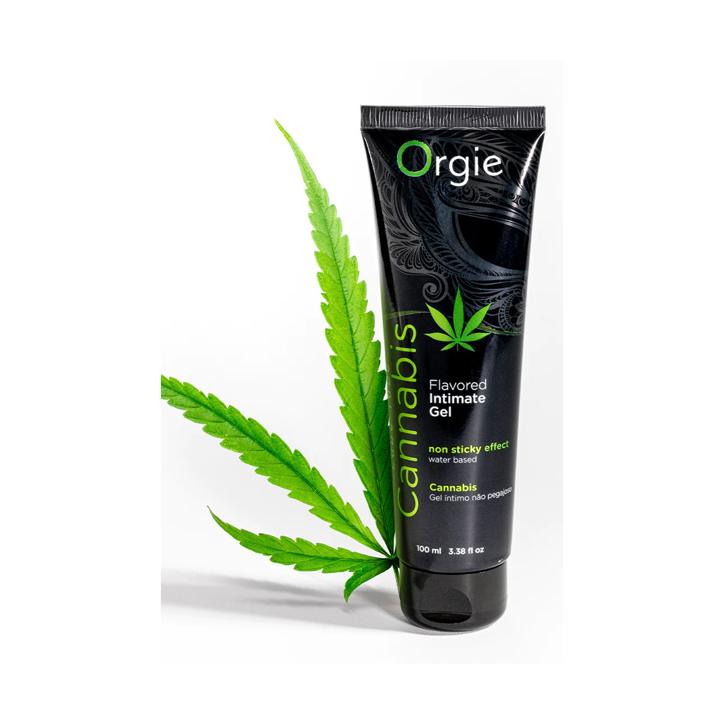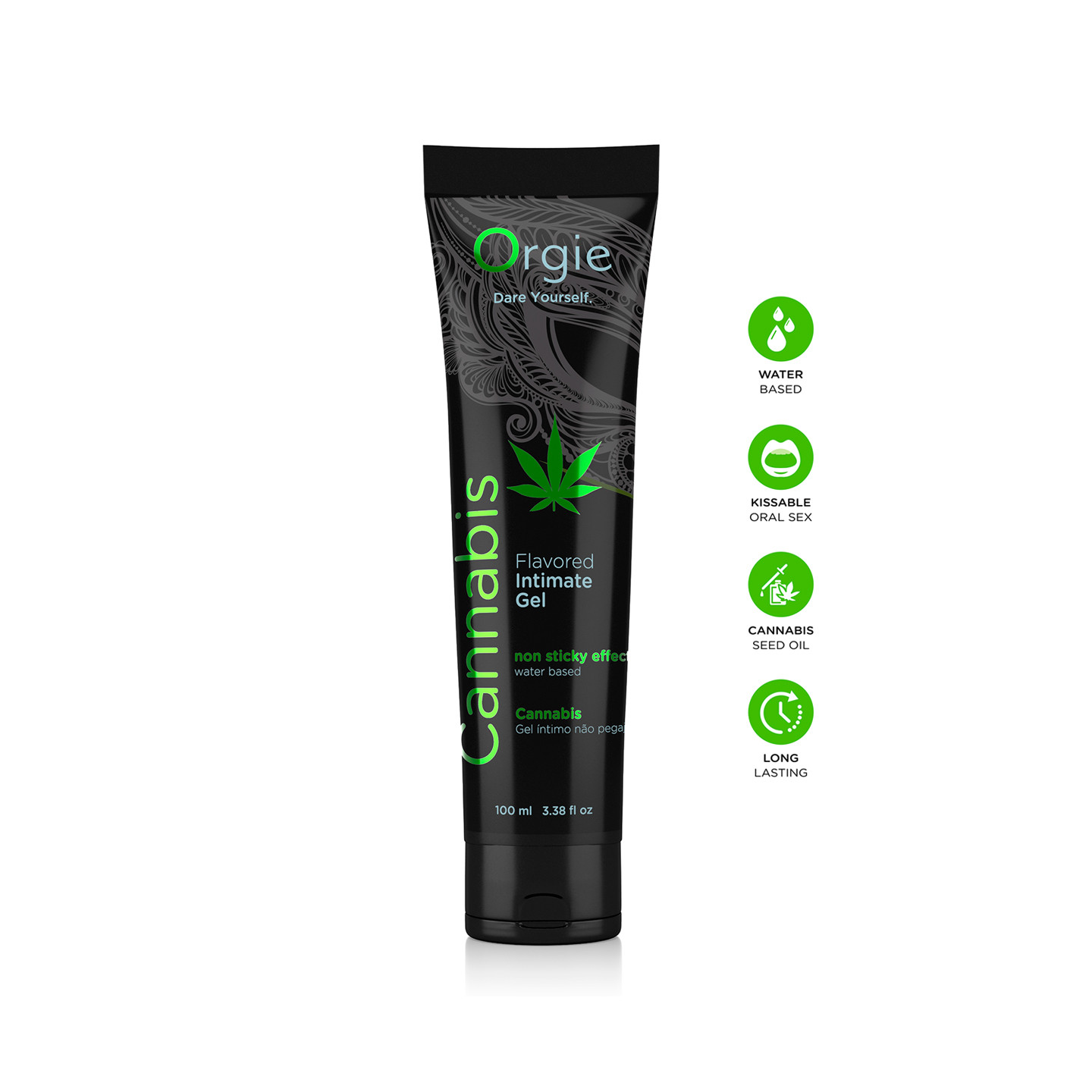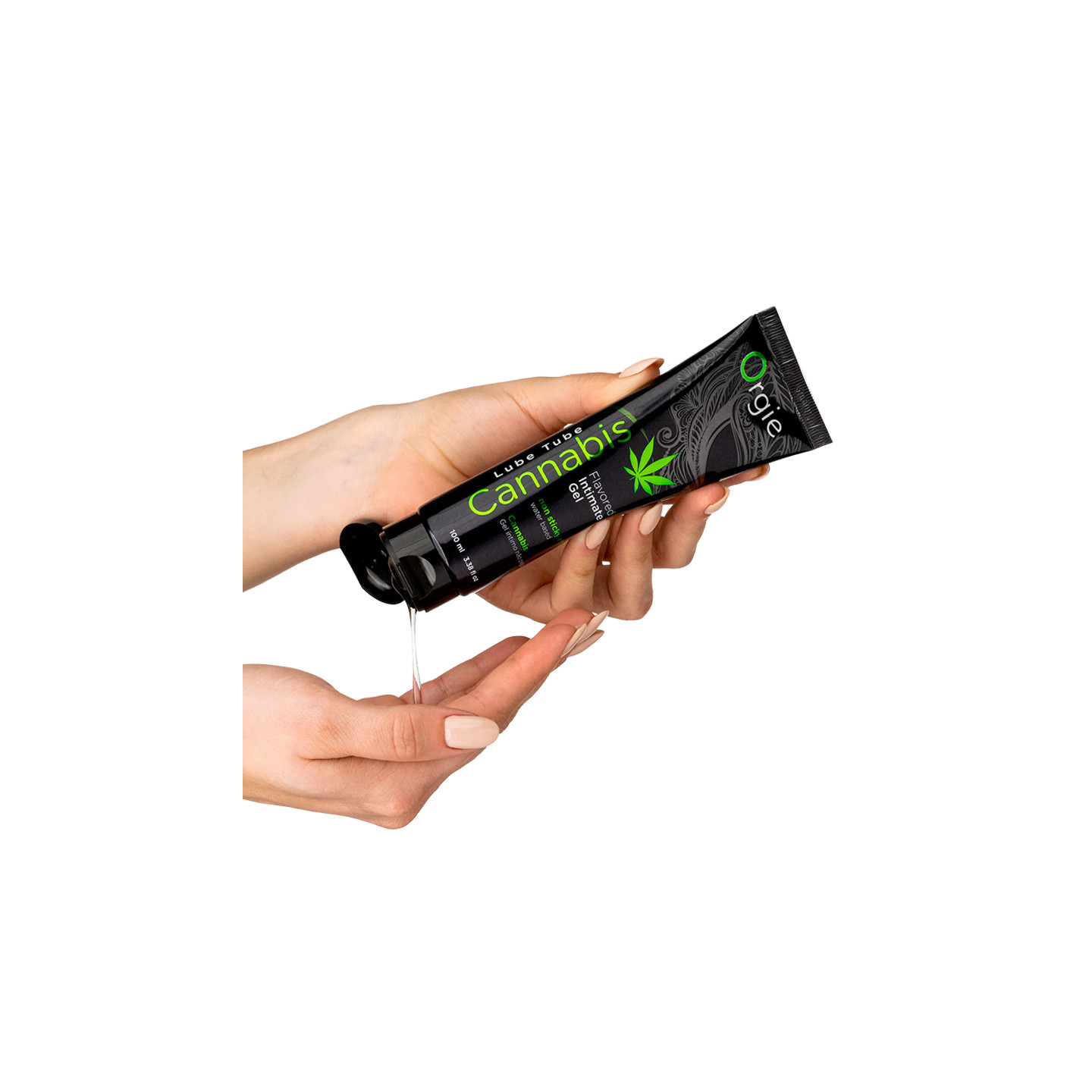 Lube Tube Cannabis (100 ml), le gel intime à base deau, embrassable, hydratant, au goût de cannabis, de la marque orgie.