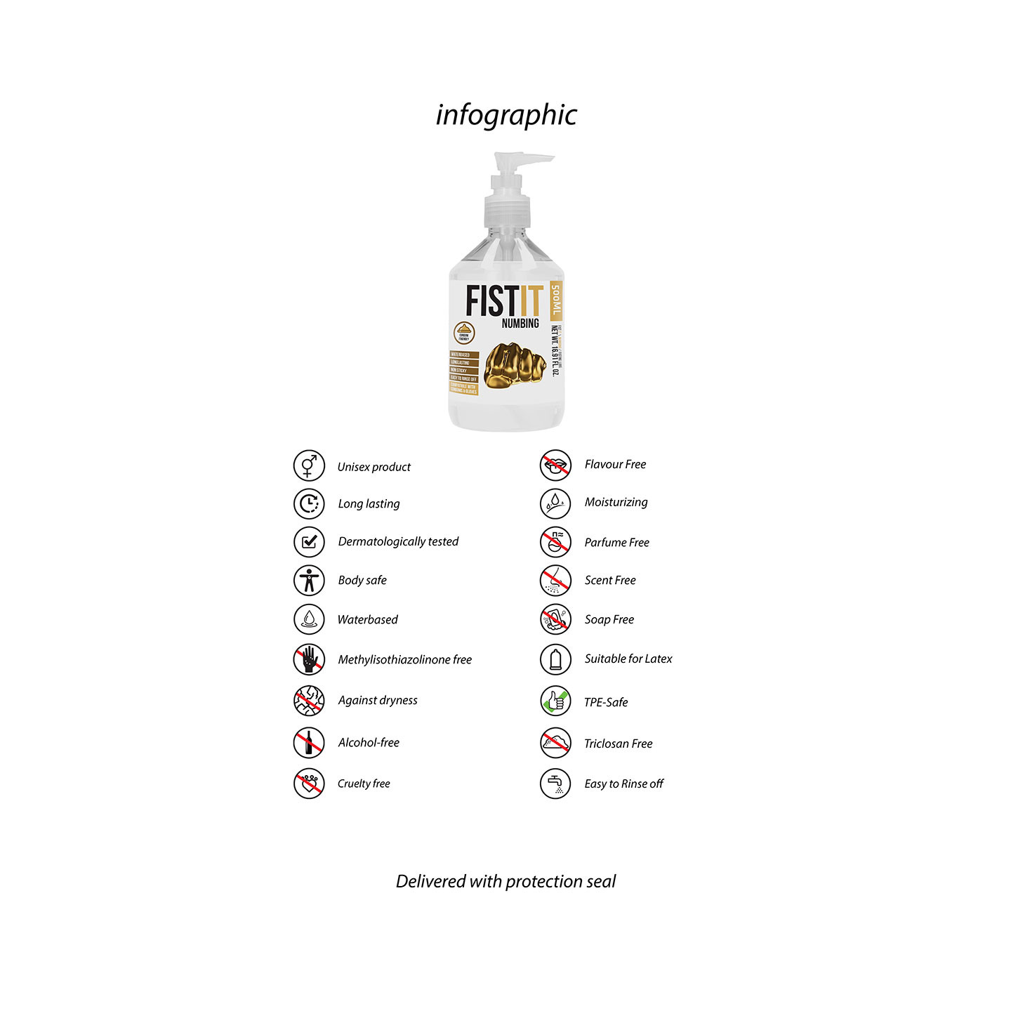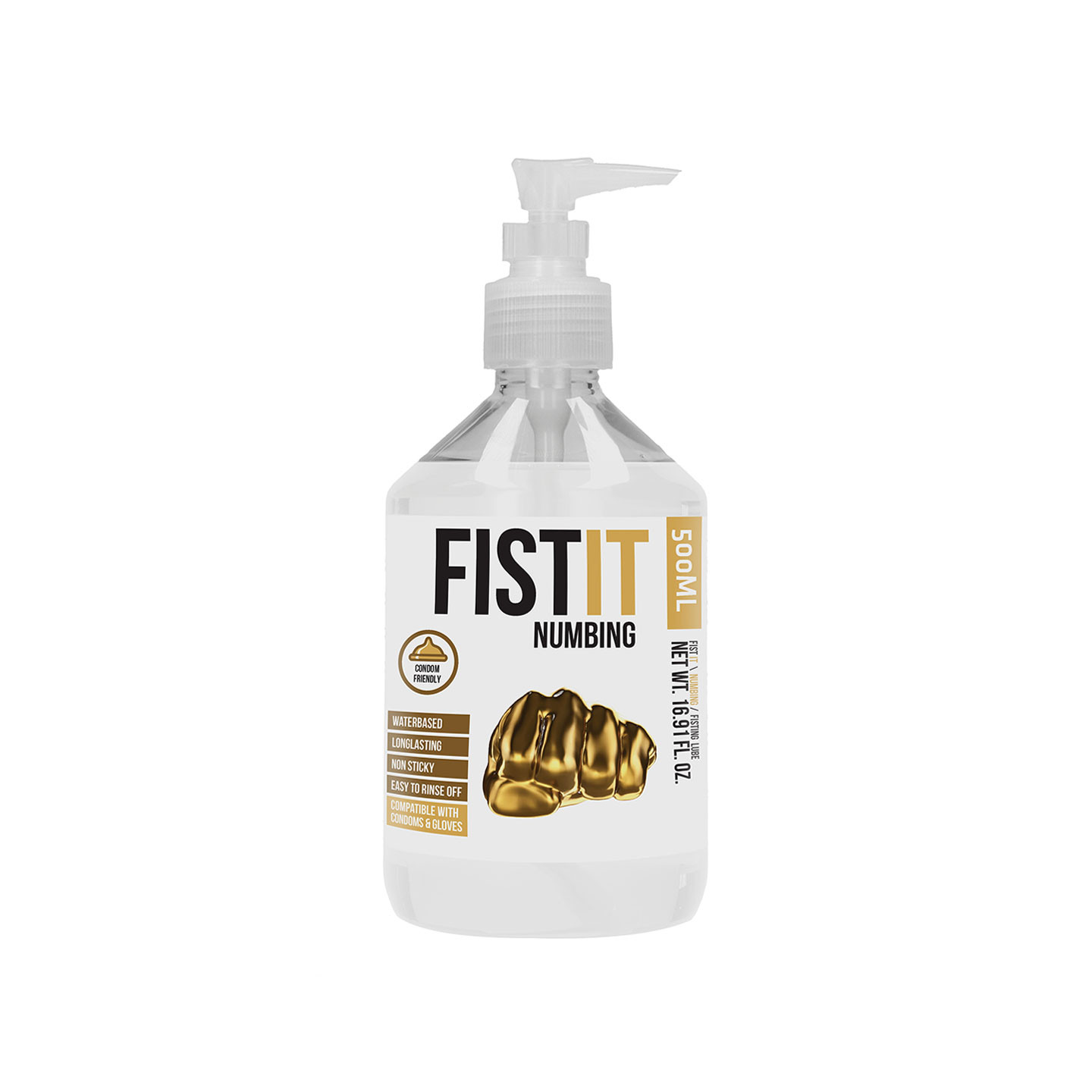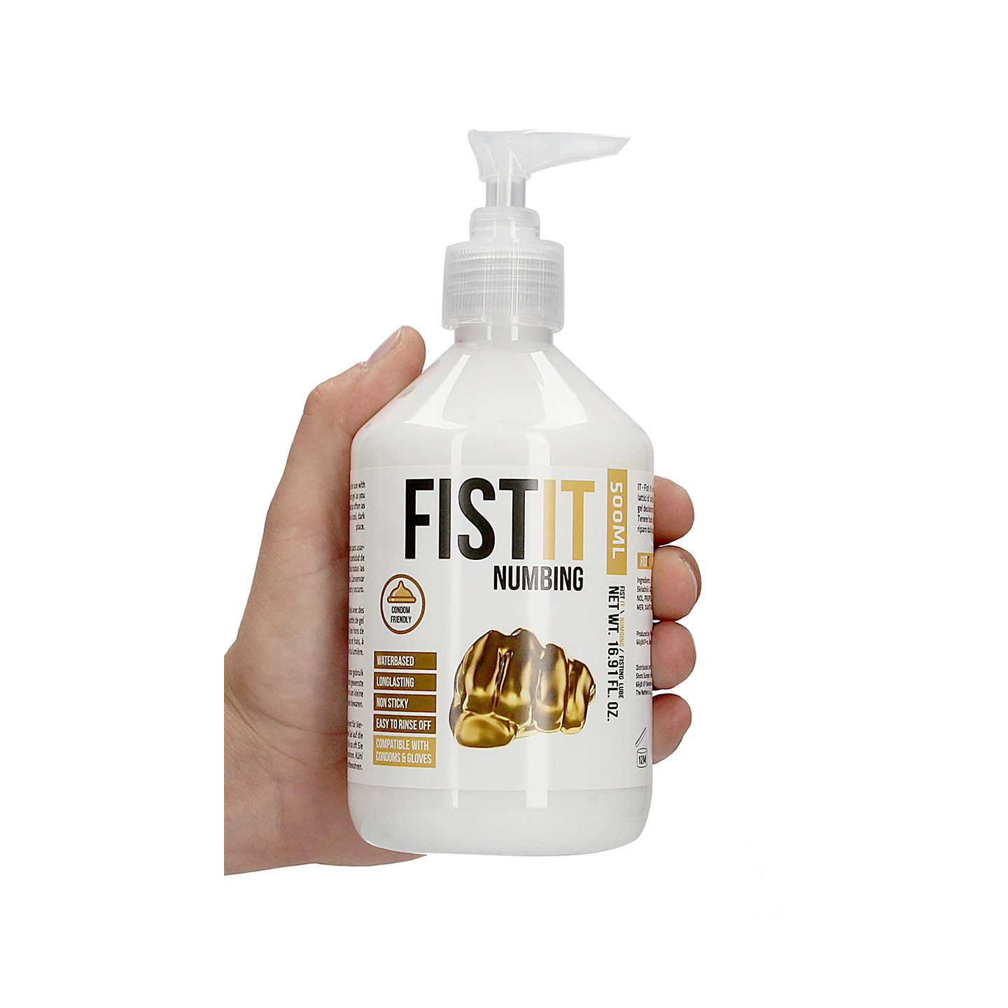 La marque hollandaise Fist It, spécialiste des produits dédiés au sexe hard propose "Fist It Numbing 500 ml", un lubrifiant à base d'eau, à la fois engourdissant, longue durée et très glissant, idéal pour faciliter la pratique du fist fucking et du sexe anal.