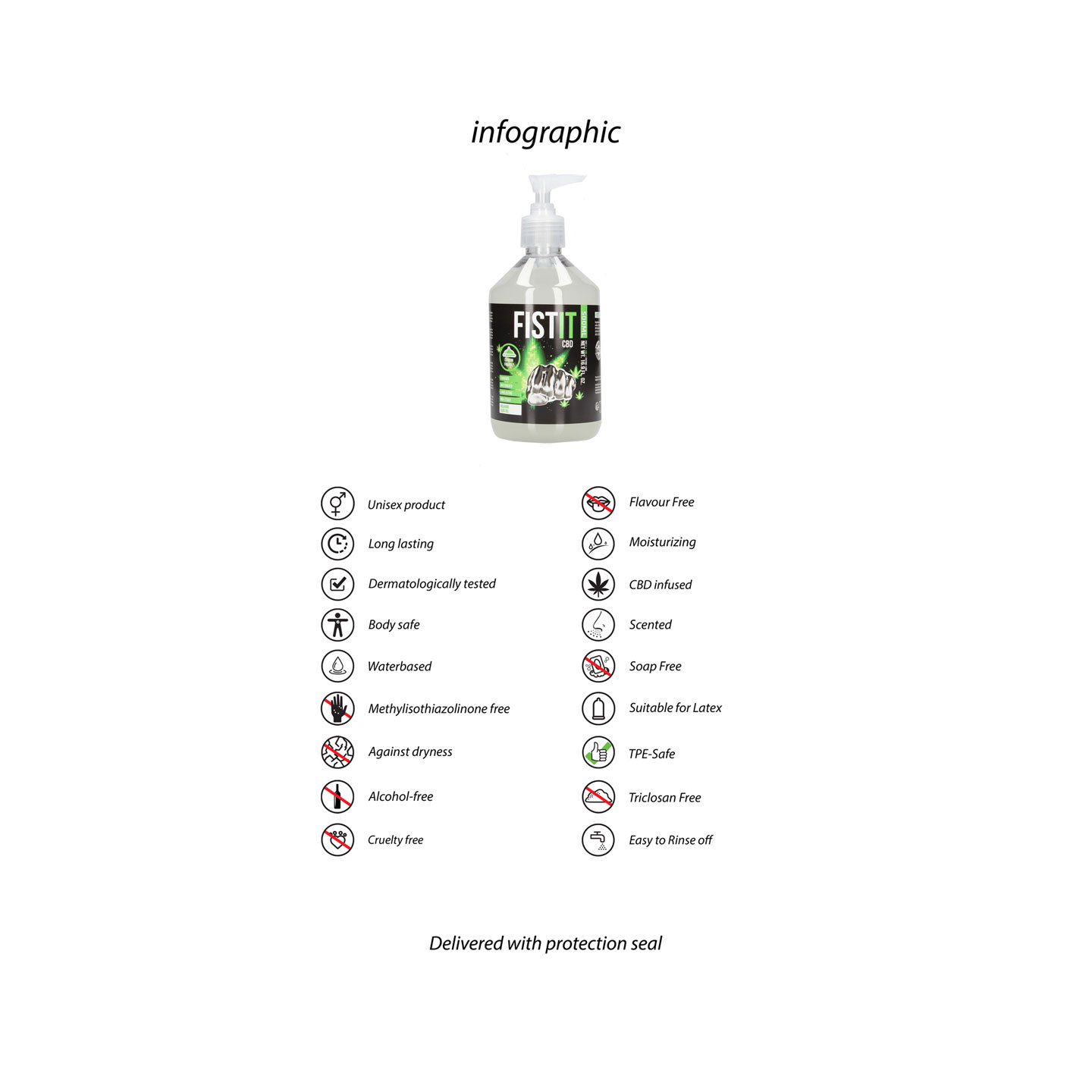 La marque hollandaise Fist It, spécialiste des produits dédiés aux pratiques extrêmes propose "Fist It CBD Lubricant 500ml", un lubrifiant à base d'eau infusé au CBD, à la fois relaxant, longue durée et ultra glissant, idéal pour faciliter le fist fucking et le plaisir anal.