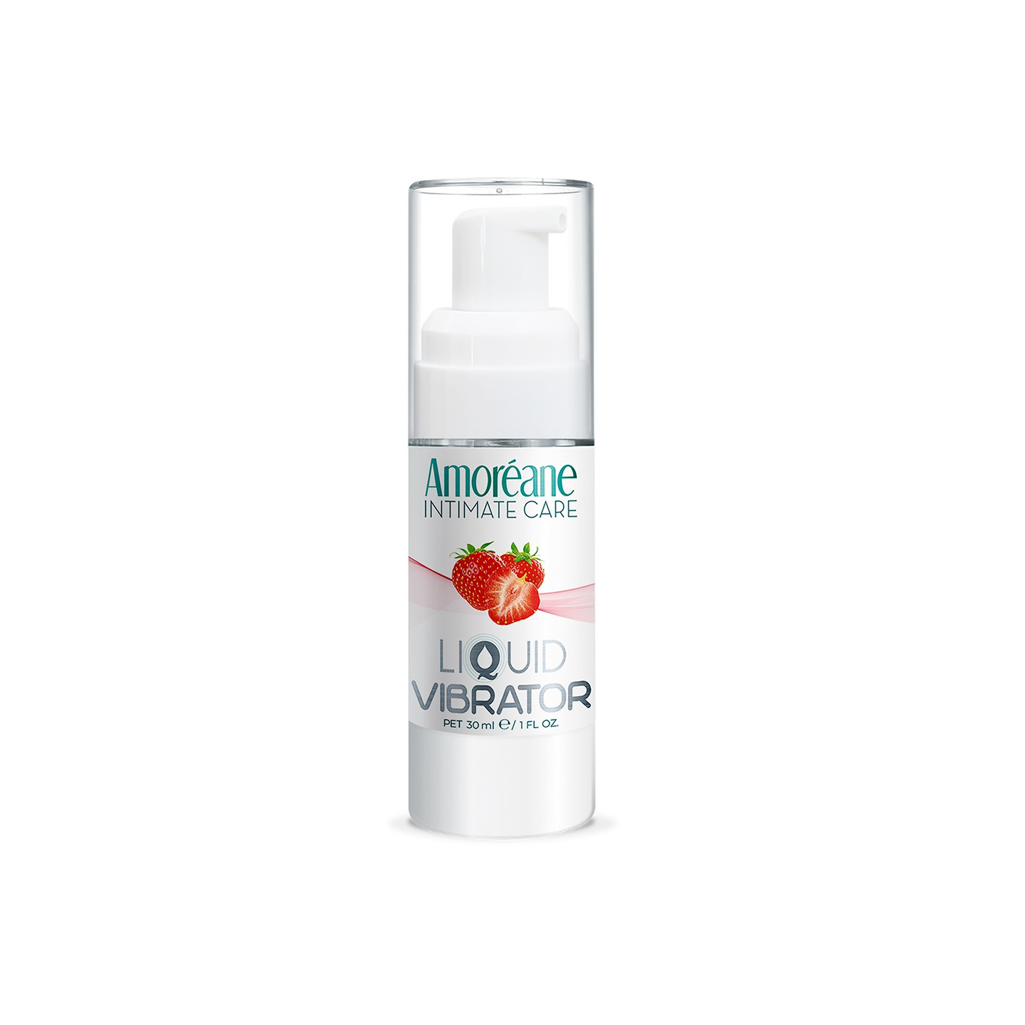 Liquid Vibrator Fraise, fabriqué par Amoréane Med est un lubrifiant intime médical à base d'eau parfumé à la fraise avec effet vibrant.