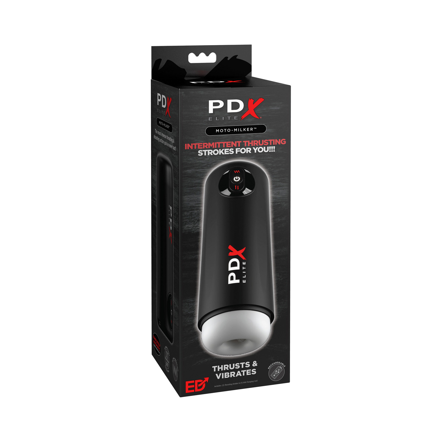 Découvrez l'expérience de masturbation ultime avec le masturbateur Premium PDX Elite Moto Milker aux puissantes fonctions vibrantes et va-et-vient simultanées.
