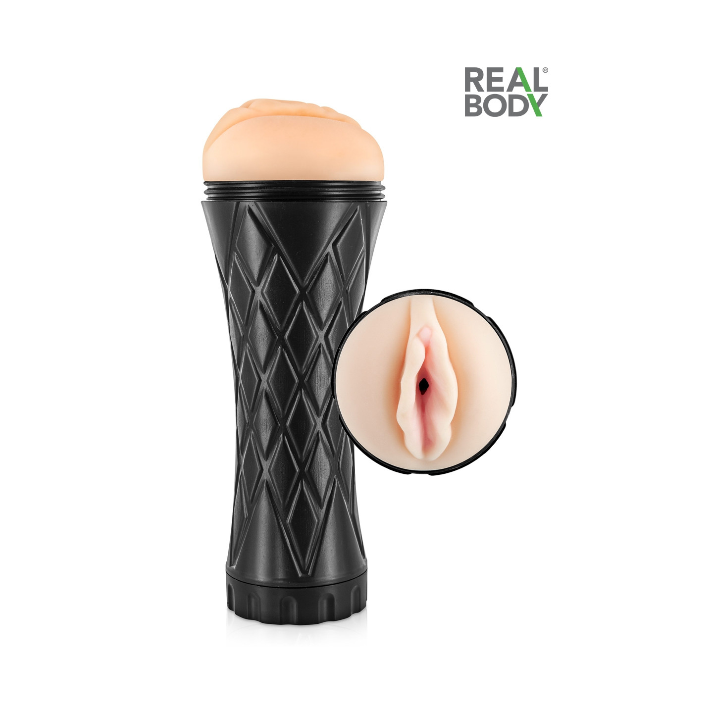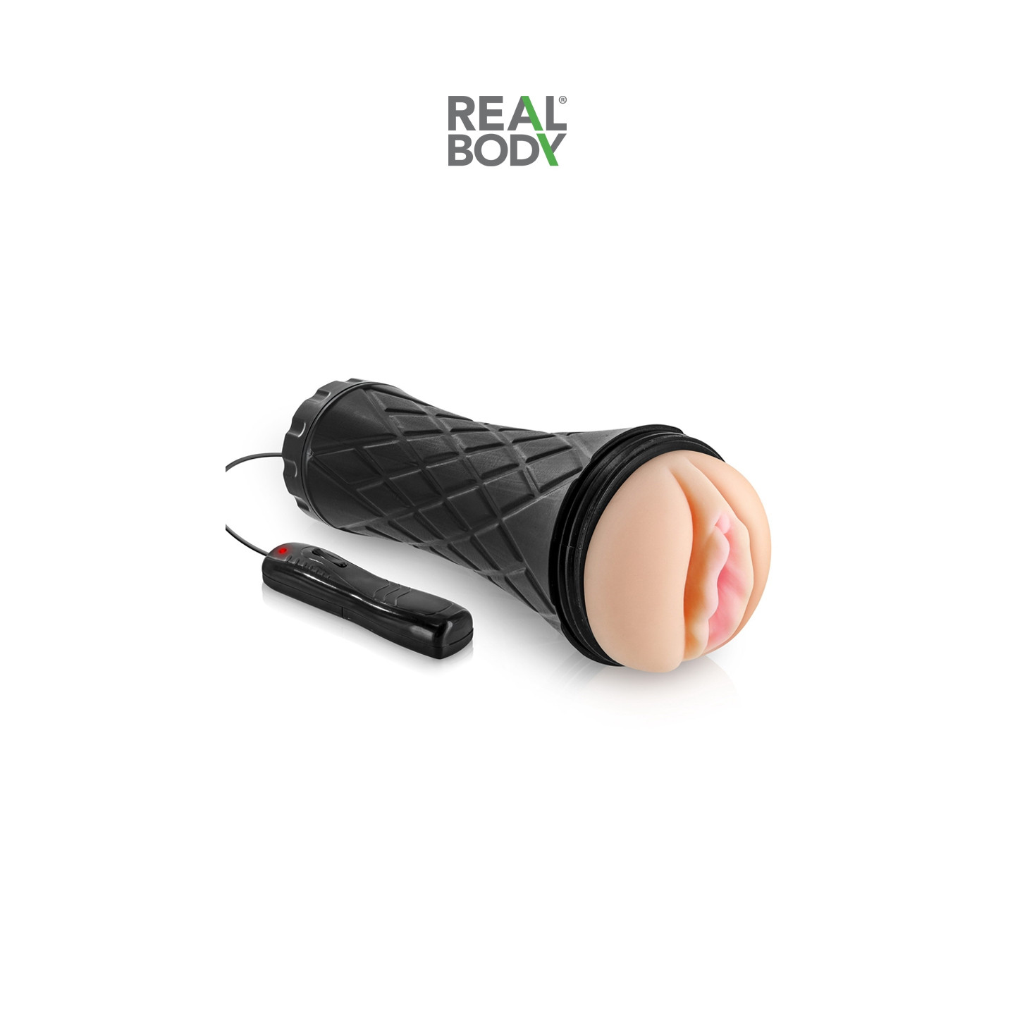 Masturbateur réaliste pour homme de la marque Real Body, avec un orifice vibrant ultra doux reproduisant de manière parfaite un vagin, pour les amateurs de pénétration vaginale et de stimulation intense.