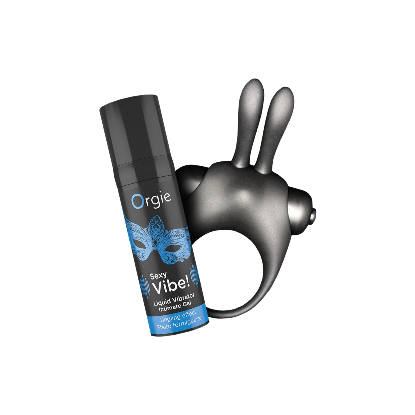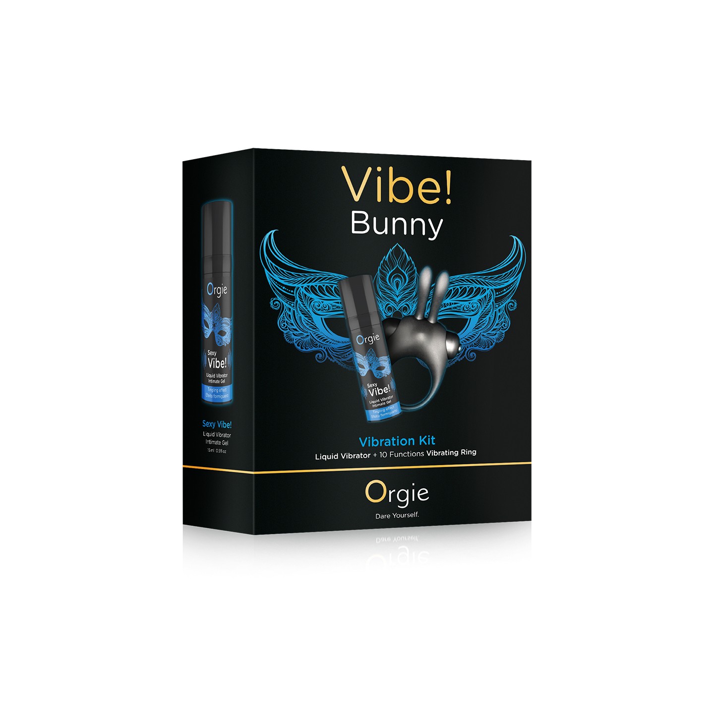 Découvrez une expérience de plaisir sensoriel unique avec Orgie Vibe! Bunny. Ce kit combine les effets de picotement du vibromasseur liquide Sexy Vibe! avec les vibrations intenses de l'anneau vibrant en forme de lapin, offrant 10 modes de vibration pour maximiser vos sens.