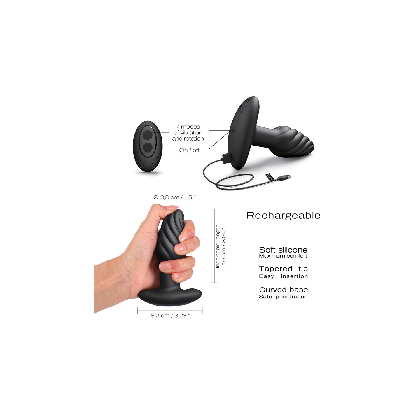 Spin Plug de Dorcel est un luxueux plug anal vibrant et rotatif en silicone doux et contrôlé à l'aide d'une télécommande sans fil , destiné aux hommes, femmes et couples.
