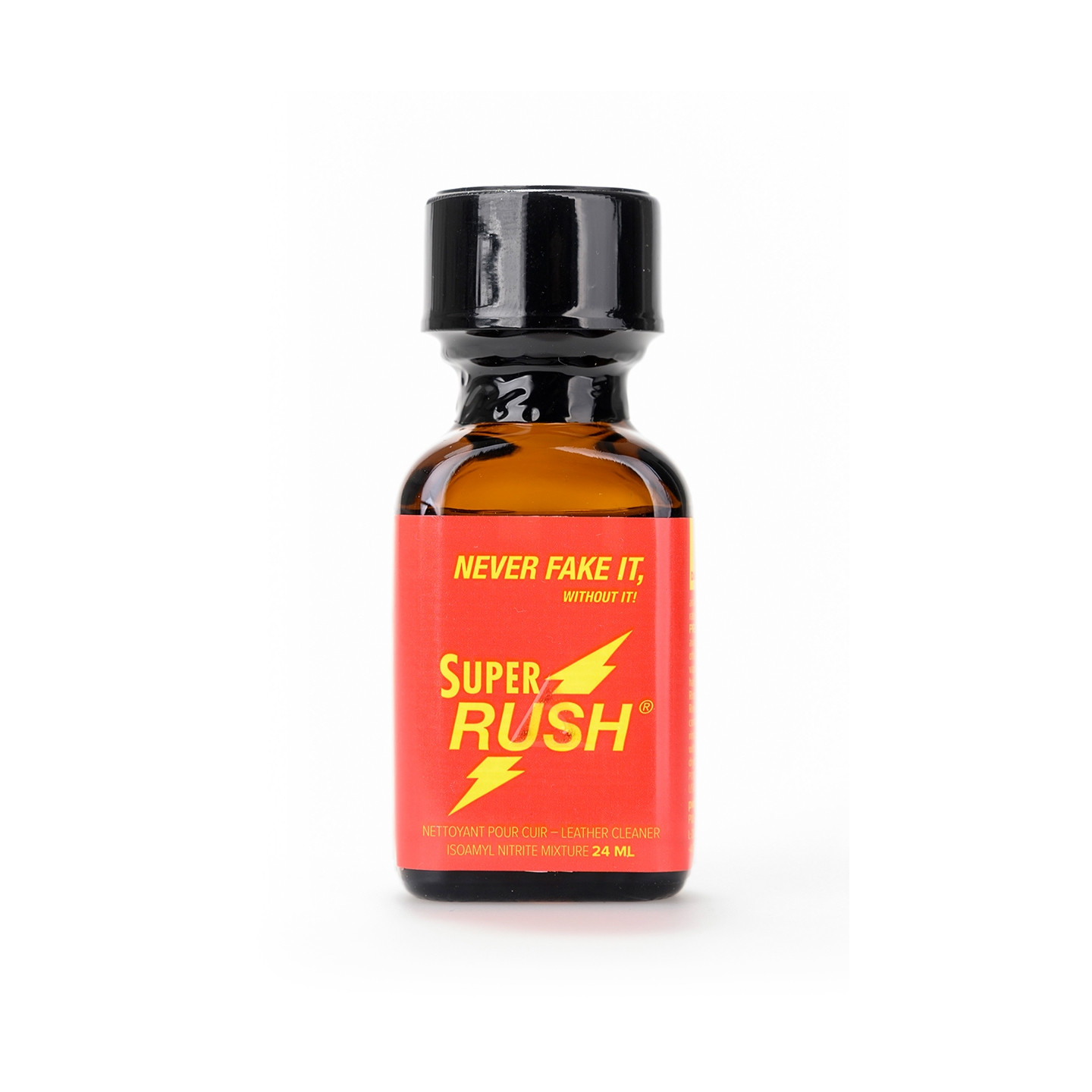 Le Poppers Super Rush est proposé en flacon de 24 ml. Il est équipé d'un bouchon sécurisé qui garantit son étanchéité, sa conservation et sa puissance, et vous permet de le transporter sans risque de fuite.