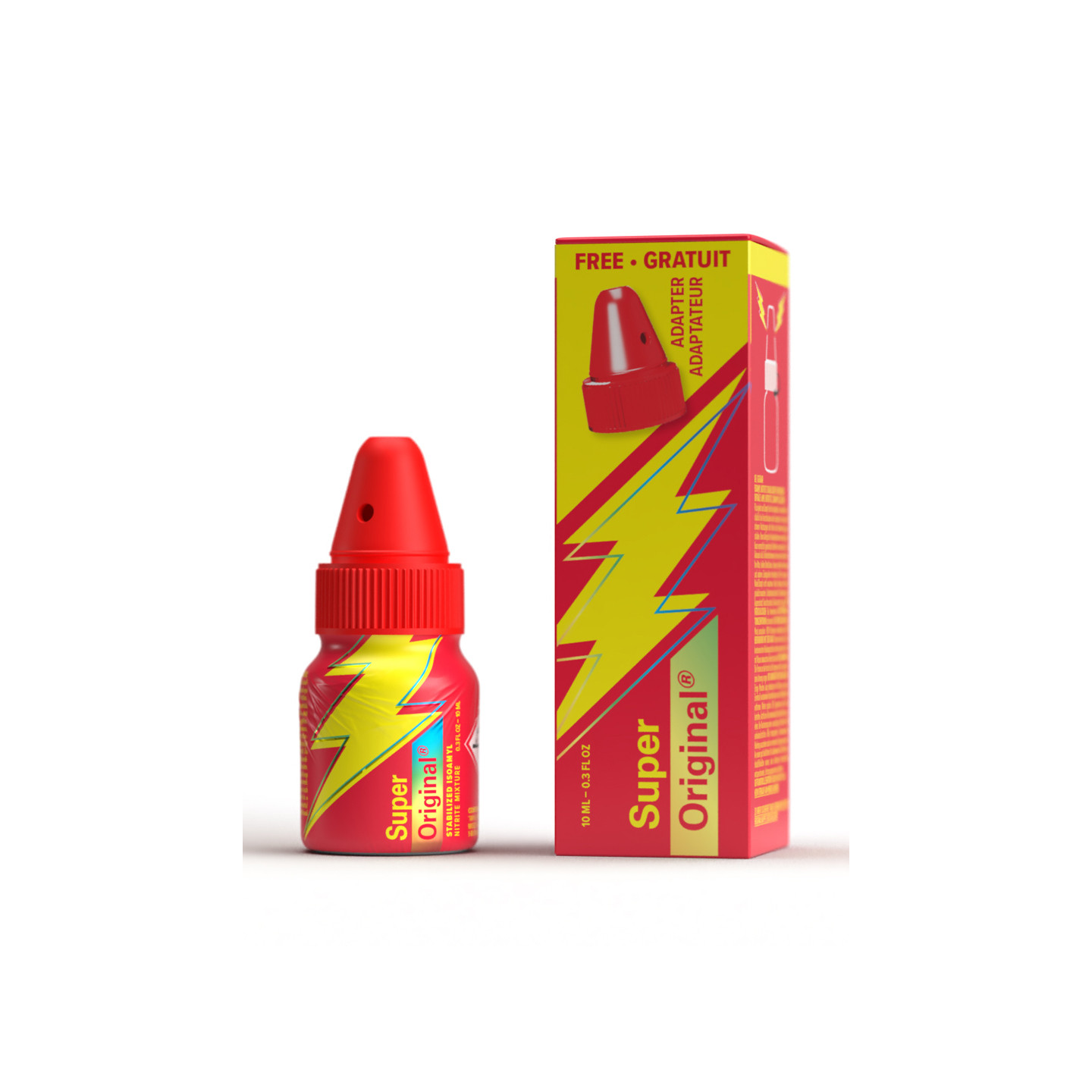 Equipé d'un bouchon anti fuite, le poppers Super Original est proposé en bouteille de 10 ml.