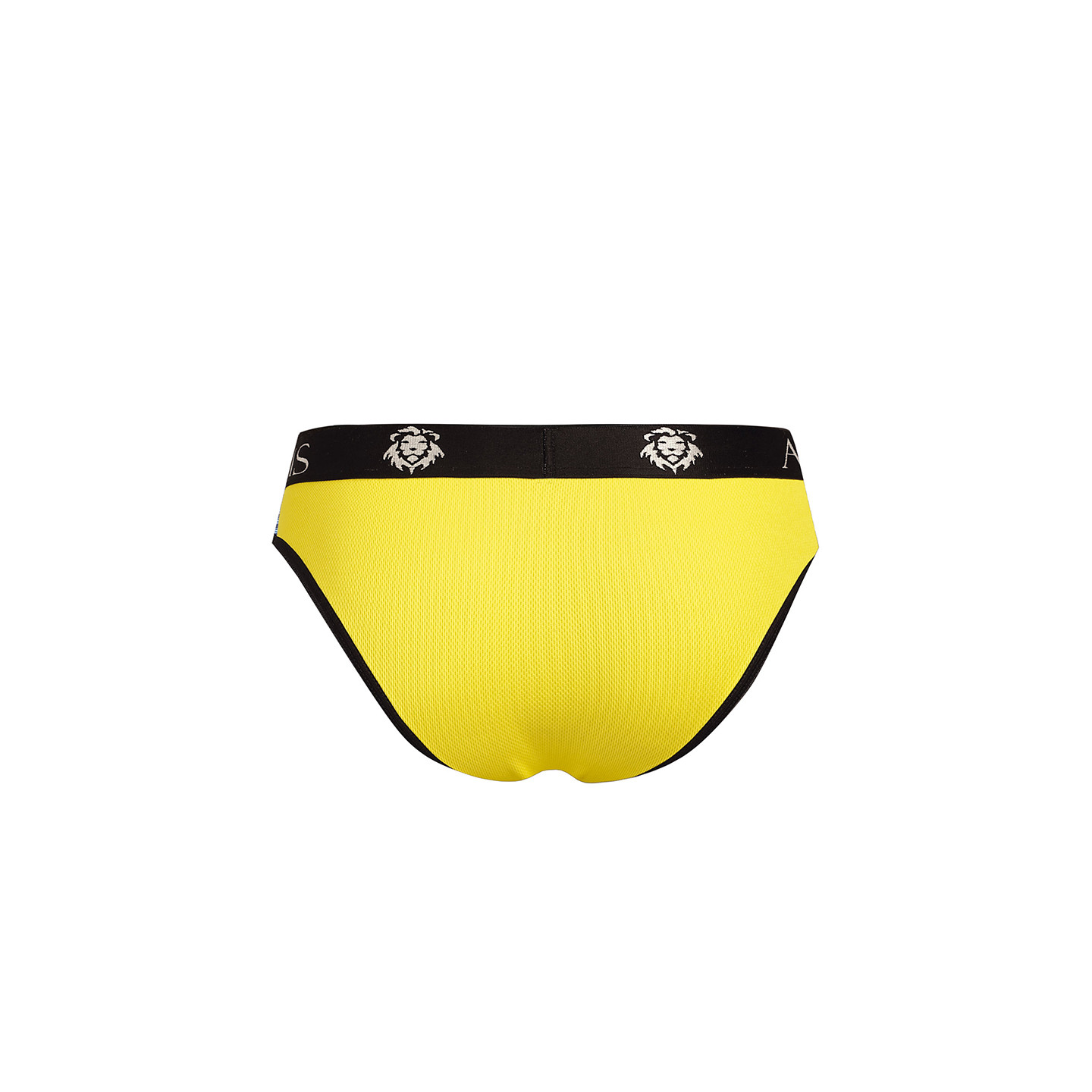 Ce slip sexy est fabriqué en Tissu jaune texturé esprit gaufré.