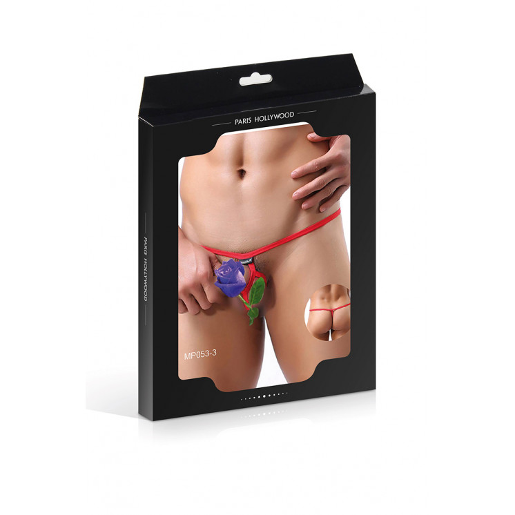 Vous l'aurez compris, la rose bleue présente sur la photo n'est là que pour protéger la vue des personnes les plus sensibles. En effet ce string original et 100% coquin ne cache absolument rien !
