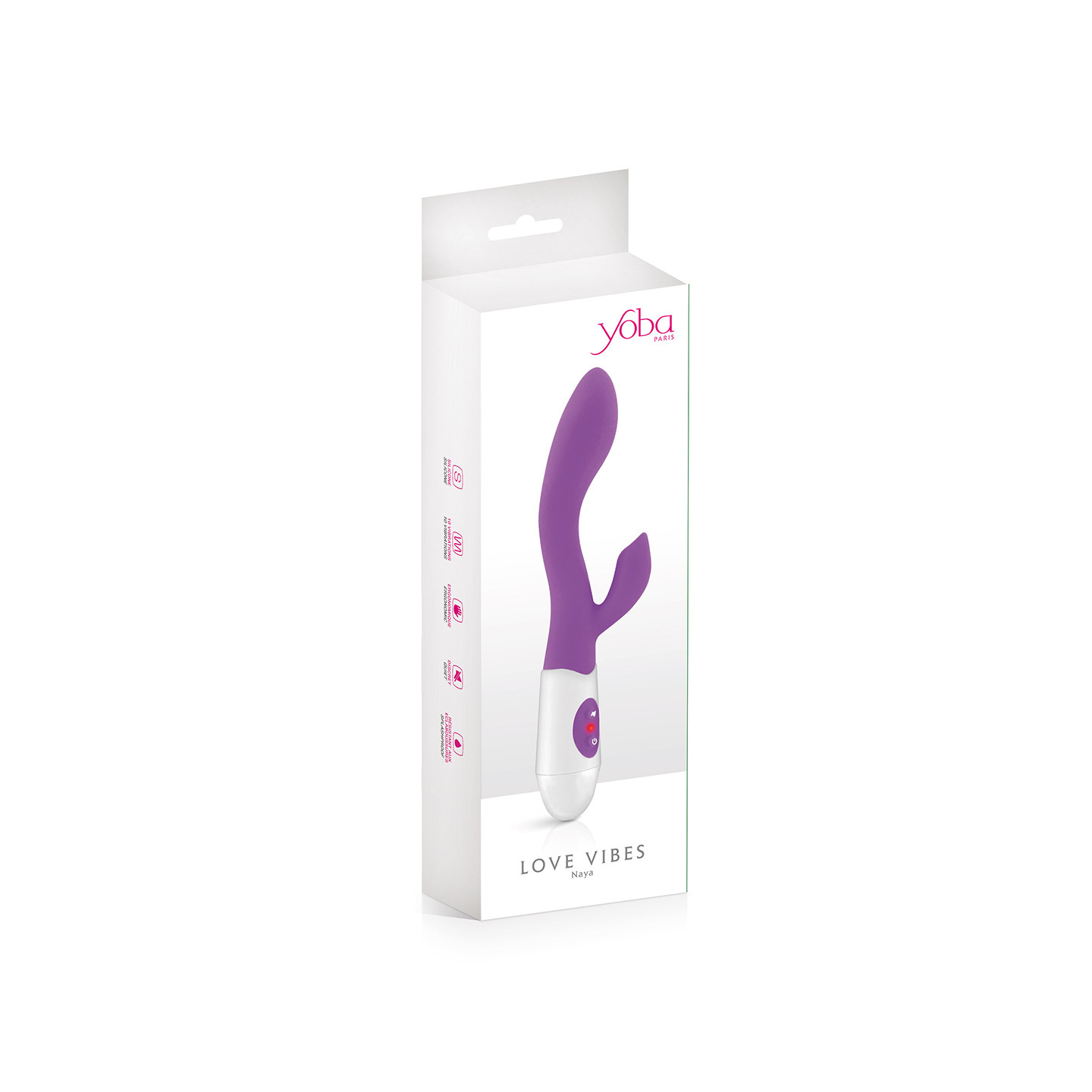 Le vibromasseur Rabbit Naya (coloris violet) de la marque Yoba est un sextoy de qualité dédié au plaisir féminin. Il stimule en même temps le vagin, tout particulièrement la zone du point G grâce à sa forme incurvée et sa tête élargie, et le clitoris grâce à son petit ergot stimulant judicieusement placé.