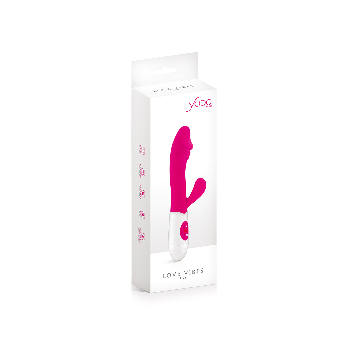 Le vibromasseur Rabbit Elya (coloris rose) de la marque Yoba est un sextoy de qualité dédié au plaisir féminin. Il stimule en même temps le vagin, tout particulièrement la zone du point G grâce à sa forme incurvée et sa tête en forme de gland semi-réaliste, et le clitoris grâce à son petit ergot stimulant judicieusement placé.